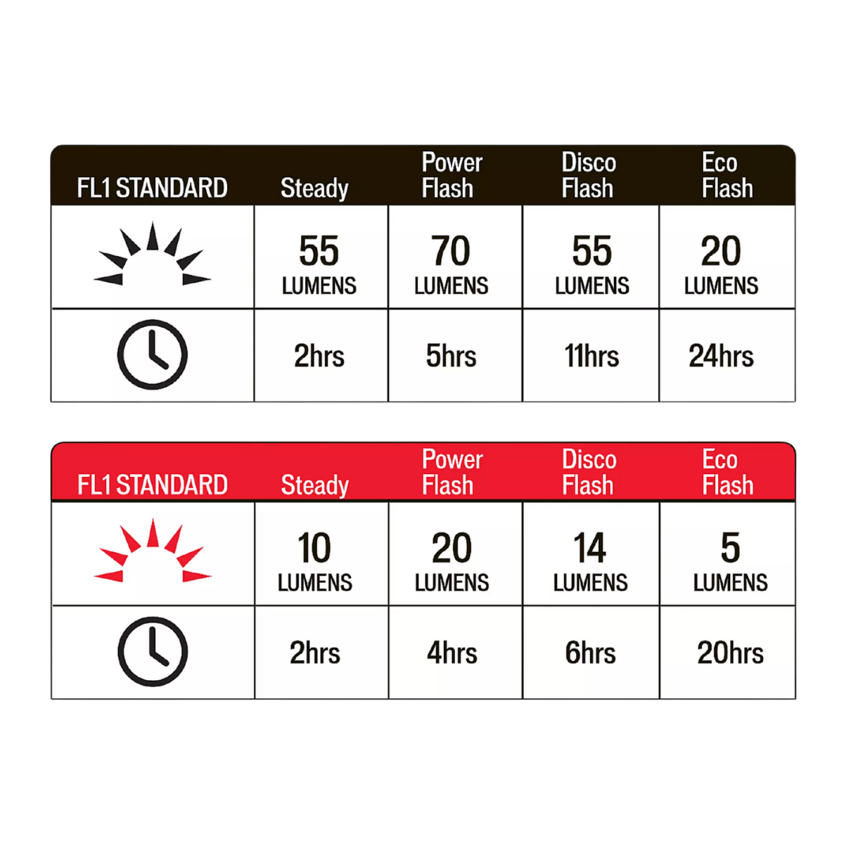 • Red Eco Flash mode: 5 lumens for 20:00 hours
