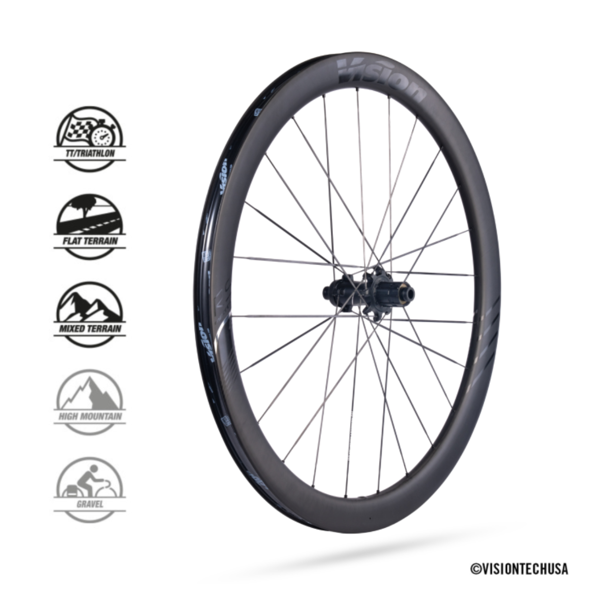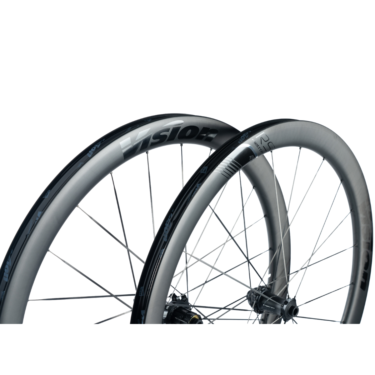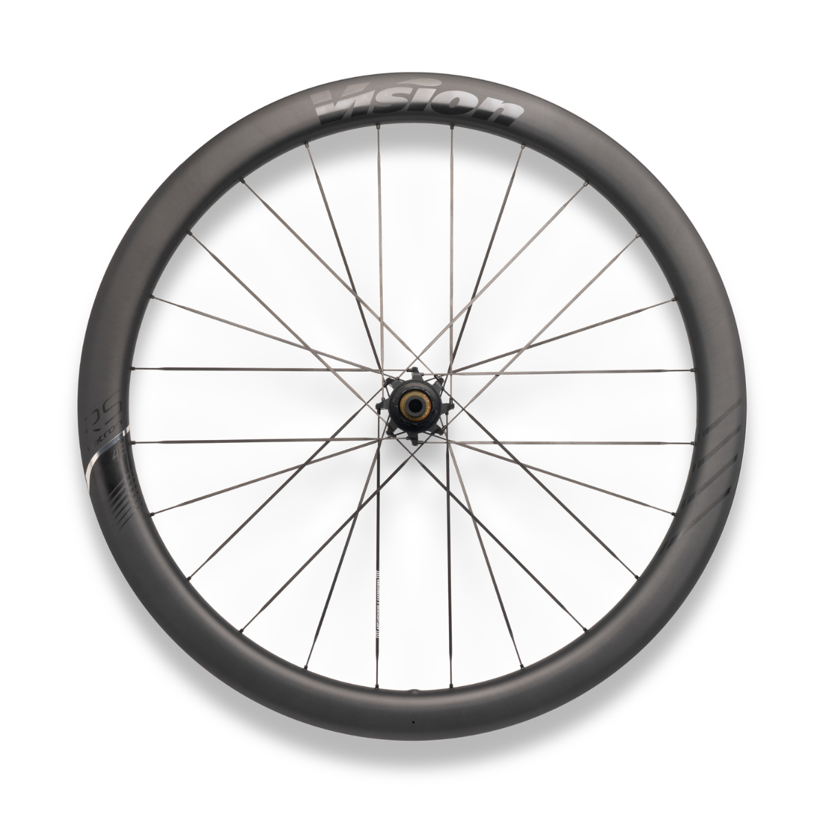Vision is proud to introduce its very first full carbon wheelset: Metron RS (Racing Series), available in 45 and 60mm rims. Built with full carbon rim and spokes, a larger internal diameter compared to Metron SL (23mm) and the new V-1000 hub with PRS technology, Metron RS is designed to win. Extensive CFD analysis and wind-tunnel testing with the most advanced Vision carbon technology coupled with state-of-the-art manufacturing processes bring this handmade wheel to the next level.