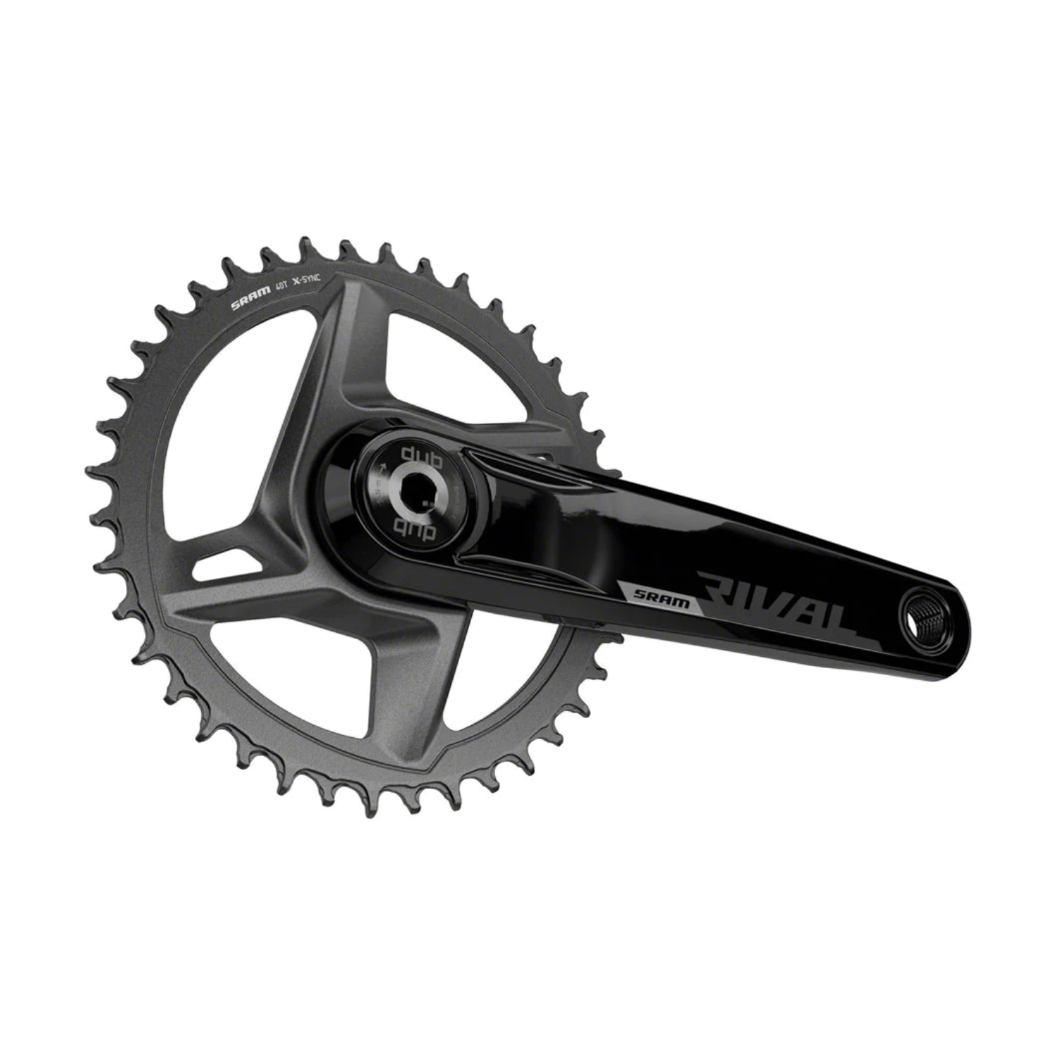 The SRAM Rival 1 Wide Crankset features wider stance of the arms and chainrings to provide clearance for extra wide tires, giving you the option to explore new, more challenging routes.