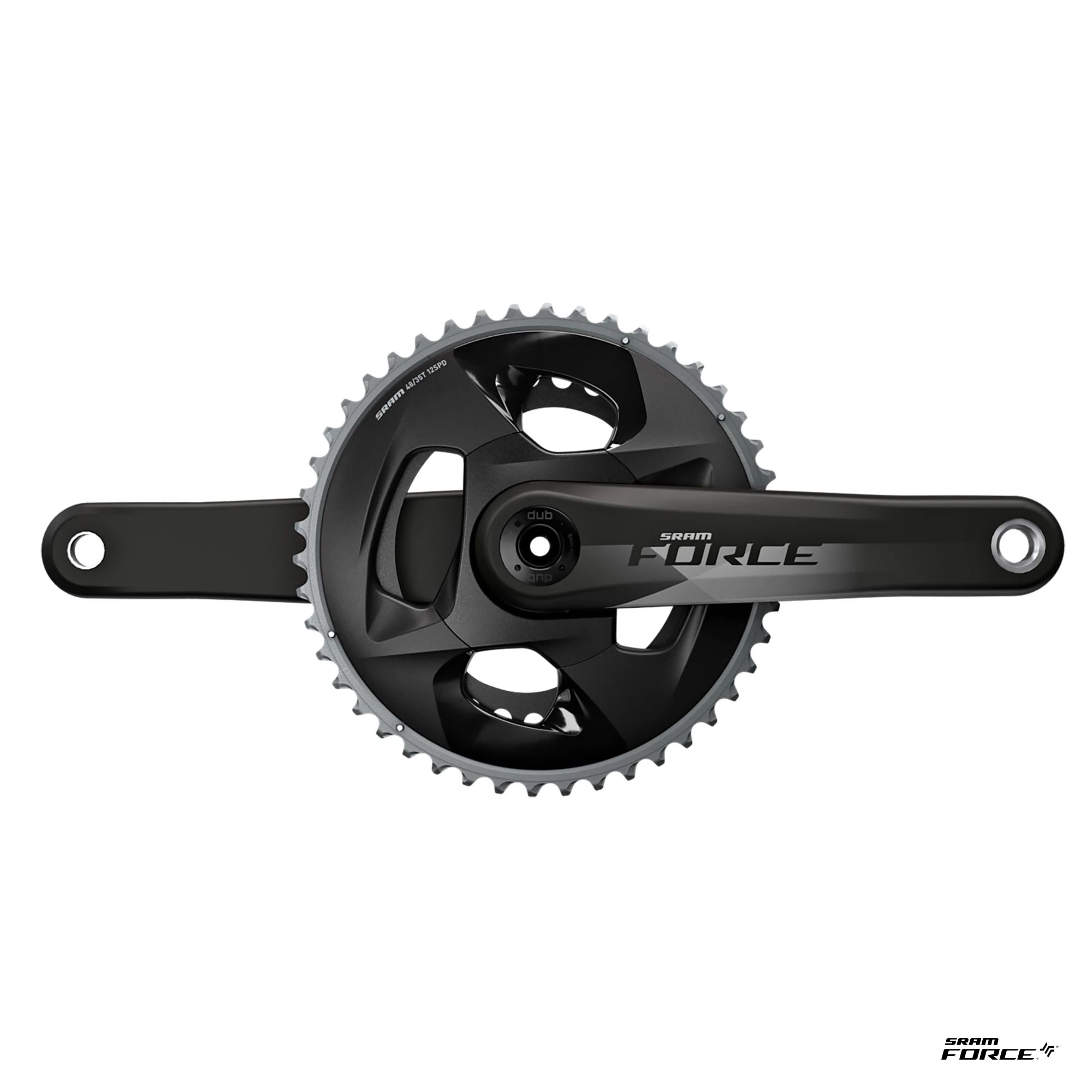 The Force 22 crankset delivers an upgrade in performance by utilizing unidirectional carbon in the crank arm matched to a forged alloy spider. And, like RED®, the hidden bolt pattern makes better use of carbon fiber to further improve stiffness and shed weight. The stunning X-GlideR™ chainrings are optimized for use with the Yaw technology in the front derailleur, delivering seamless, flawless performance. It comes in full size and compact ratios and in multiple crank arm lengths.