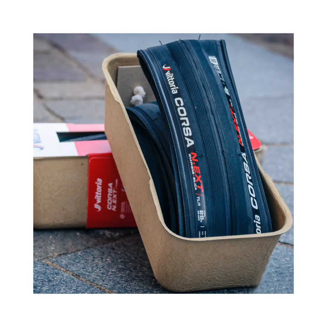 Race day, interval training, multi-summit days, unsupported base miles – the Corsa N.EXT Tubeless-Ready combines high cornering grip, low rolling resistance, and the ultra-durable construction of a daily workhorse. Those qualities are complemented by the puncture-resistant tubeless design.