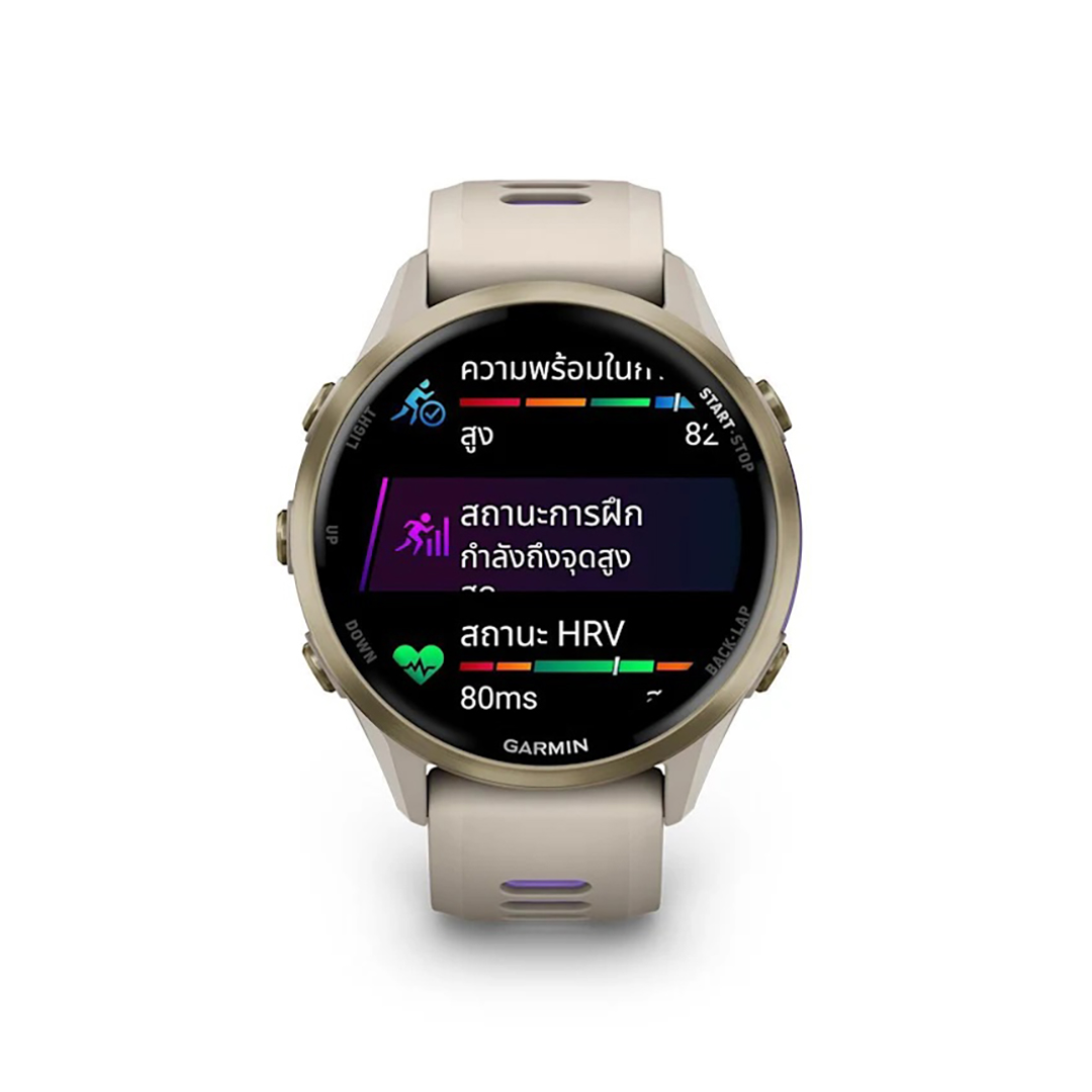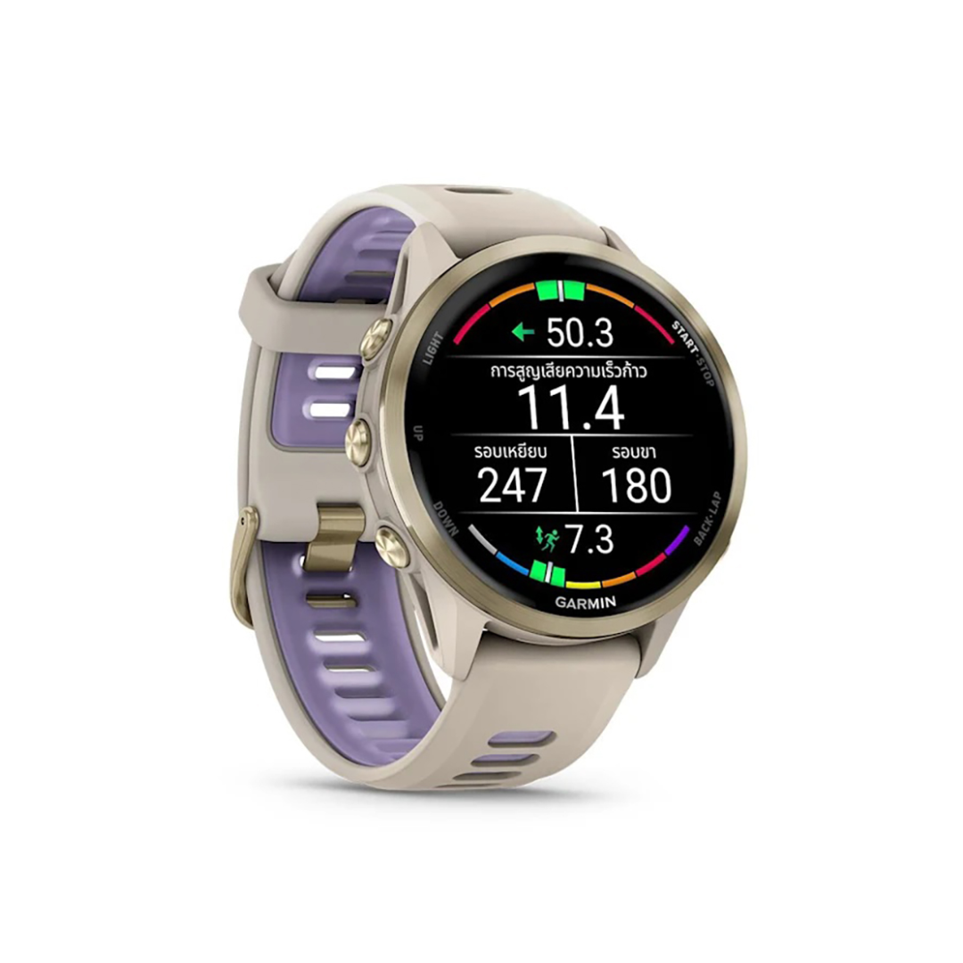 เป็นสมาร์ทวอทช์ GPS ระดับพรีเมียมที่ออกแบบมาสำหรับนักวิ่งและนักกีฬาโดยเฉพาะ มาพร้อมหน้าจอ AMOLED ขนาด 47 มม. ที่สว่างสดใสและรองรับโหมด Always-On เพื่อการอ่านข้อมูลได้ง่ายในทุกสภาพแสง ตัวเรือนผลิตจากไทเทเนียมที่แข็งแรงแต่เบา สวมใส่สบายตลอดวัน โดยฟีเจอร์เด่นของ Forerunner 970 ได้แก่ การวัดพลังงานที่ใช้ในการวิ่ง (Running Power) และการวิเคราะห์พลศาสตร์การวิ่ง (Running Dynamics) โดยไม่ต้องใช้เซนเซอร์เสริม นอกจากนี้ยังมีฟีเจอร์การฝึกซ้อมขั้นสูง เช่น การติดตามความแปรปรวนของอัตราการเต้นหัวใจ (HRV) การประเมินความพร้อมในการฝึกซ้อม (Training Readiness) พร้อมแผนที่ในตัวและการรองรับ Garmin Pay สำหรับการชำระเงินแบบไร้สัมผัส ทั้งหมดนี้ช่วยให้นักกีฬาสามารถฝึกซ้อมและแข่งขันได้อย่างมีประสิทธิภาพและปลอดภัยยิ่งขึ้น
