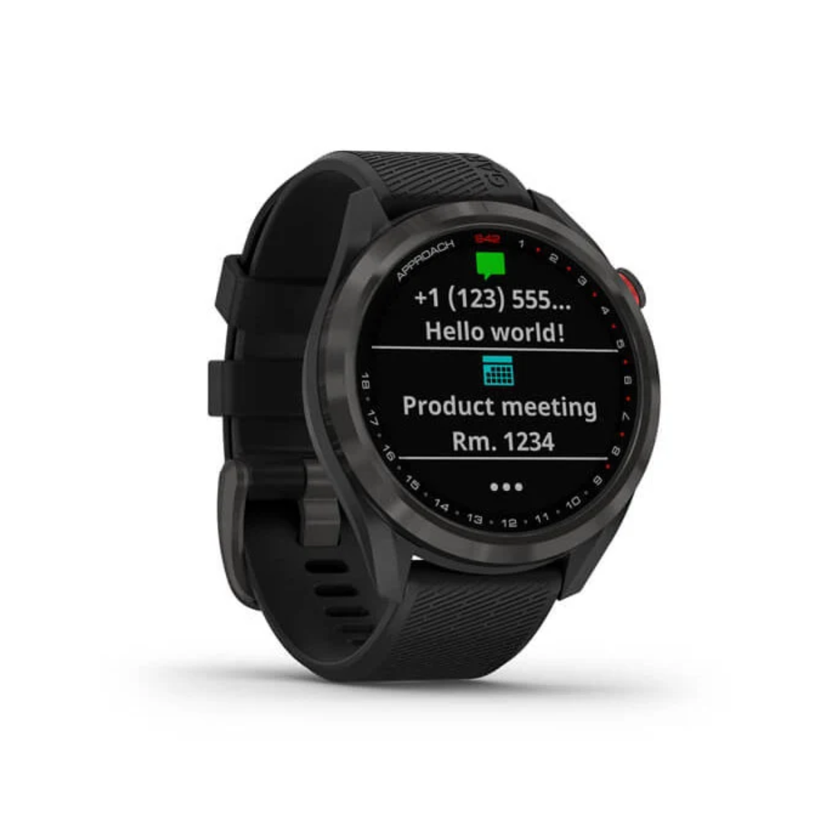 - 1x Garmin Approach S42 010-02572-40 Digital Dial Gunmetal With Black Silicone Strap