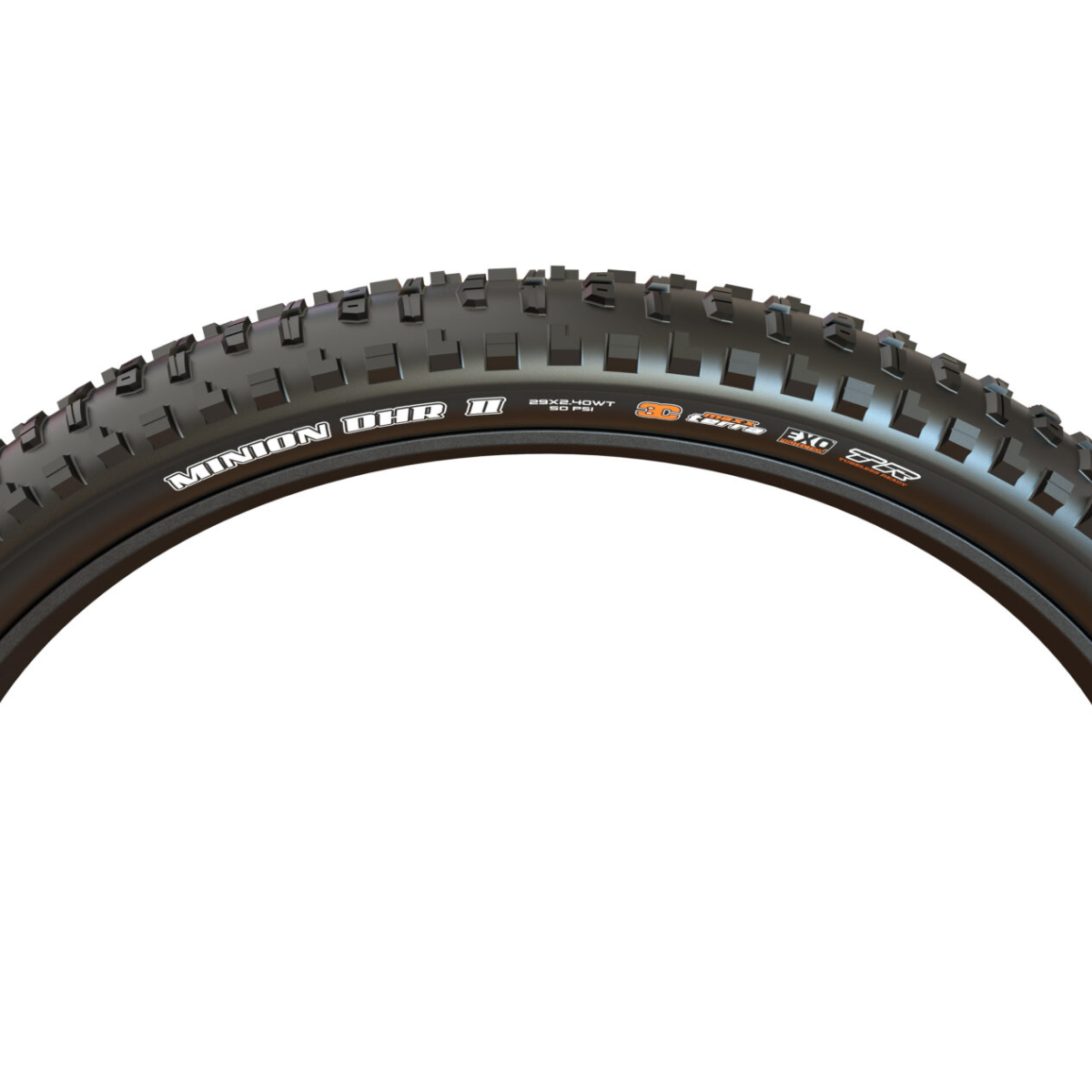 With side knobs borrowed from the legendary Minion DHF, but widened to provide more support, the DHR II corners like no other. The center tread features ramped leading edges to improve acceleration and sipes to create a smooth transition when leaning the bike. Paddle-like knobs on the center tread dig in under hard braking and help keep the bike under control.