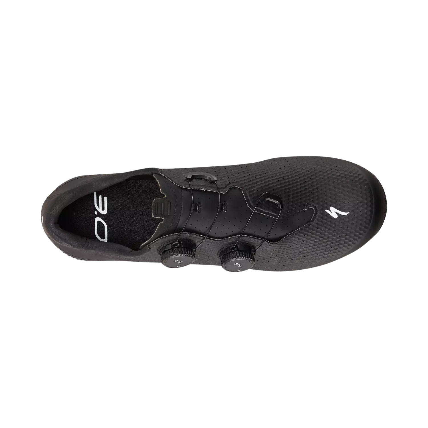 Carbon Plate: The Torch 3.0 features a lightweight, unidirectional carbon plate that enables balanced stiffness throughout the shoe, all while using less material, thus saving weight and ensuring efficient power transfer, mirroring its S-Works counterpart. Additionally, large rubber grips on the outsole of the toe and heel provide a stable, grippy platform for a seamless transition when pushing off the pavement to clip in or coming to a stop at a traffic light.