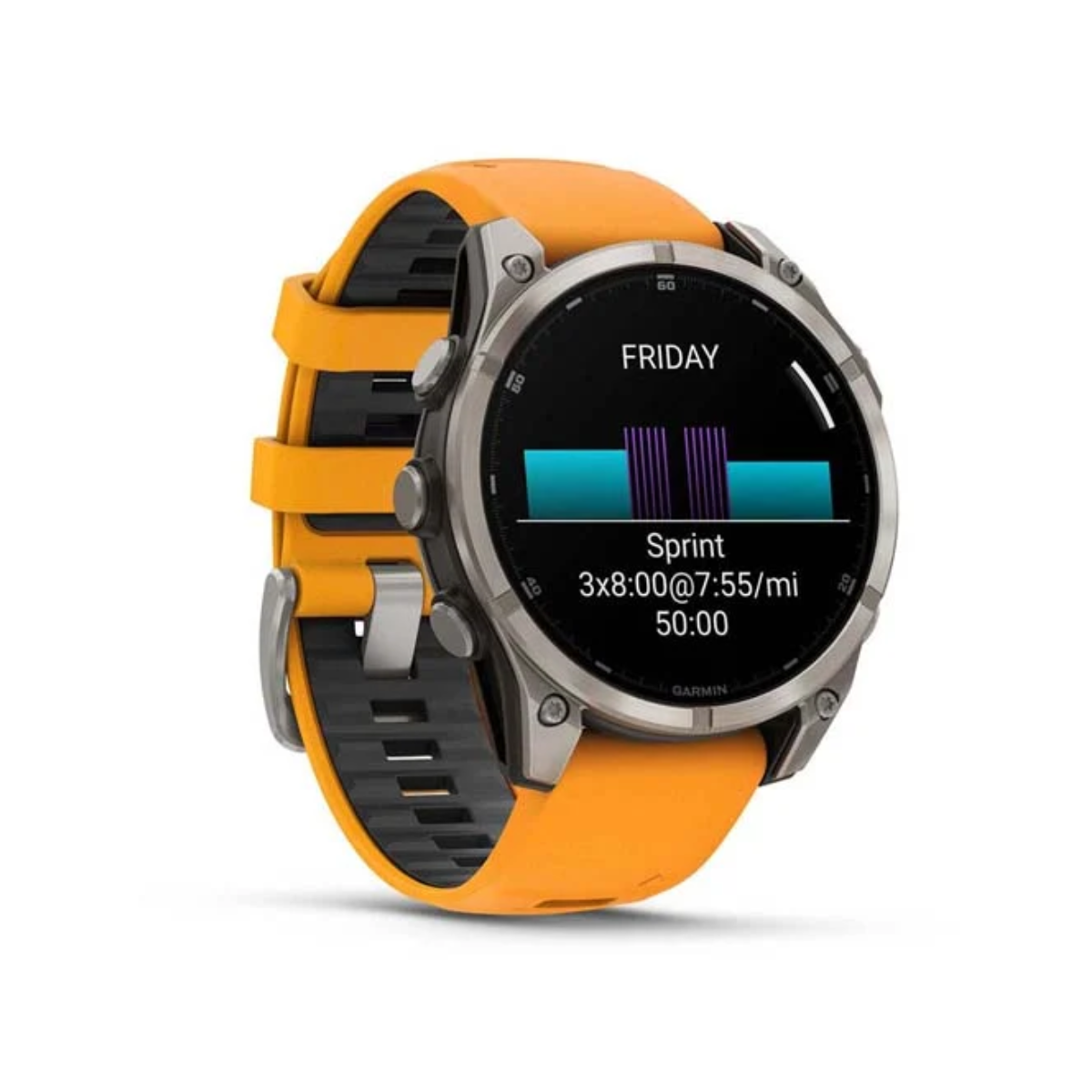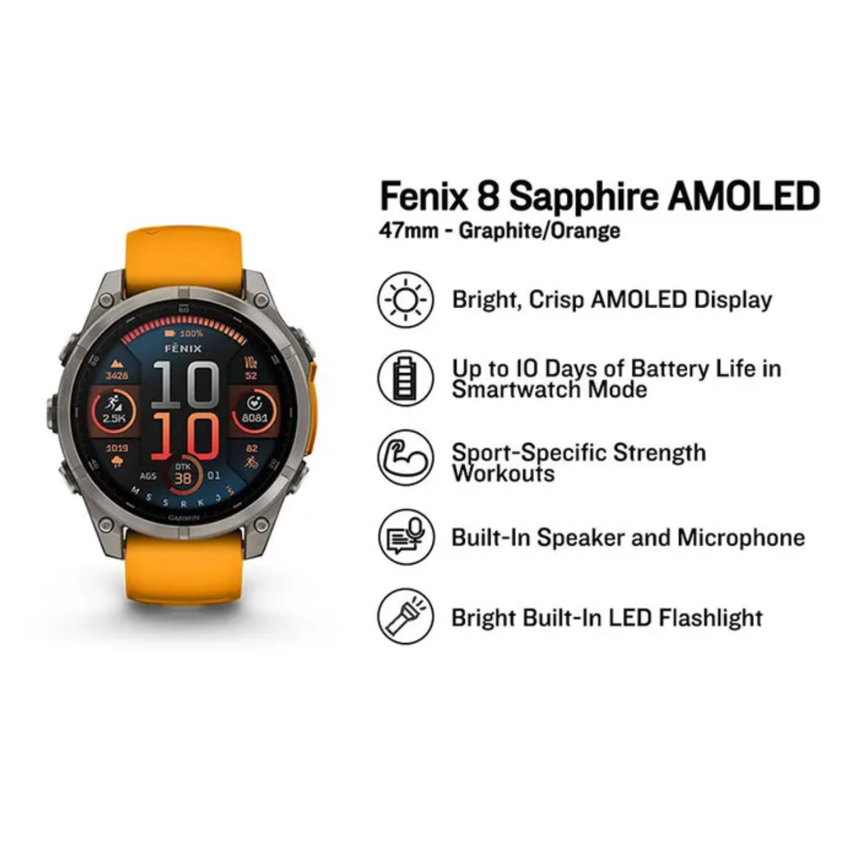 - 1x Garmin Fenix 8 47 010-02904-19 Smartwatch Sapphire Amoled Titanium Spark Orange Silicone Band